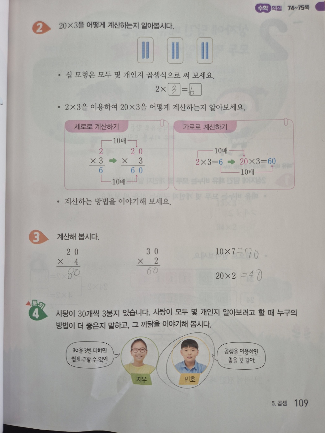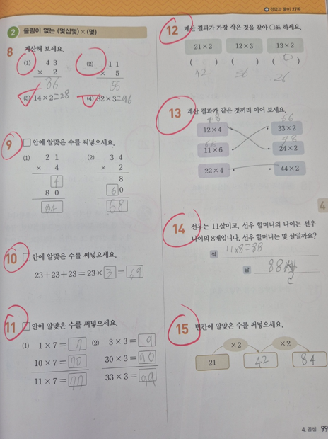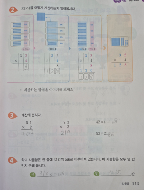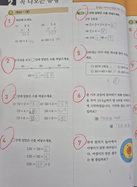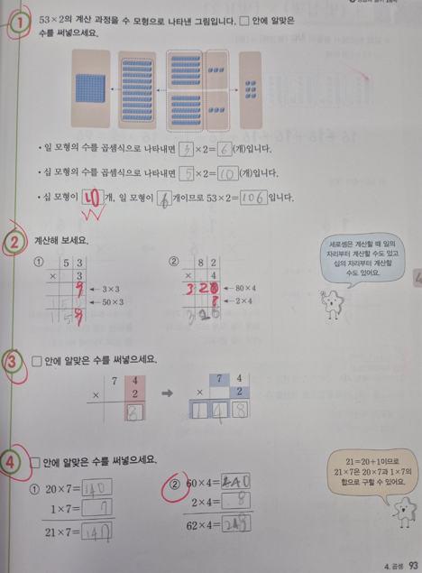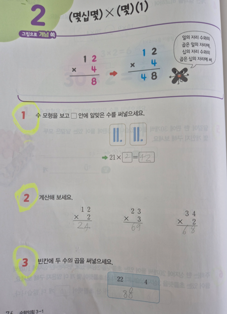 최근에 배운 곱셈 단원을 예시로 소개해드리겠습니다.