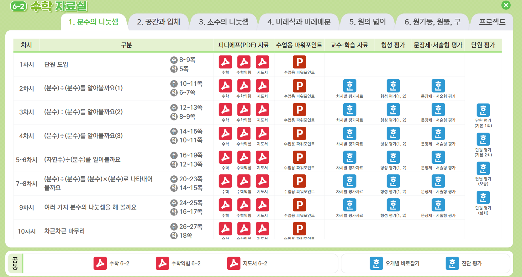 또, 상단의 자료실 기능이 삽입되어 있어 단원 별 파일들을 쉽게 다운로드 받을 수 있도록 구성되어 있습니다.