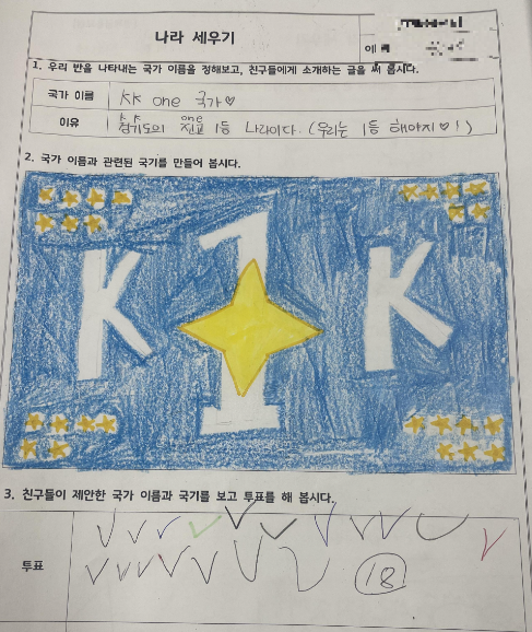 - 저희 반은 나라이름 'KK1'으로 결정되었습니다. (경기도에서 1등이 되어보자는 의미,,ㅎ)